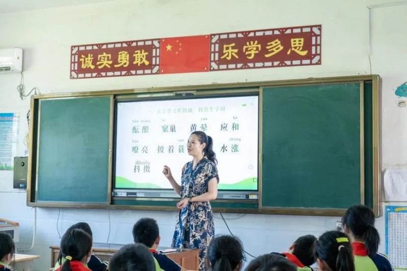 推普实践队携手“彩虹计划”志愿服务团,一同走进阳新县汪家珑小学、渡口小学、滑石小学,针对留守儿童的特点和需求,开展了一系列国家通用语言文字推广普及课程。如“推广普通话,写好规范字”的书法课程、“我是小小推普员”的绘画课堂、“典耀中华读书行动”的阅读课程,以及“三字一话”“红色经典歌曲”和“中华经典朗诵”等赛事活动。授课过程中,借助国家智慧教育读书平台、中国语言文字数字博物馆等数字推普资源,以寓教于乐的方式,使孩子们用普通话“诵、写、讲”。
