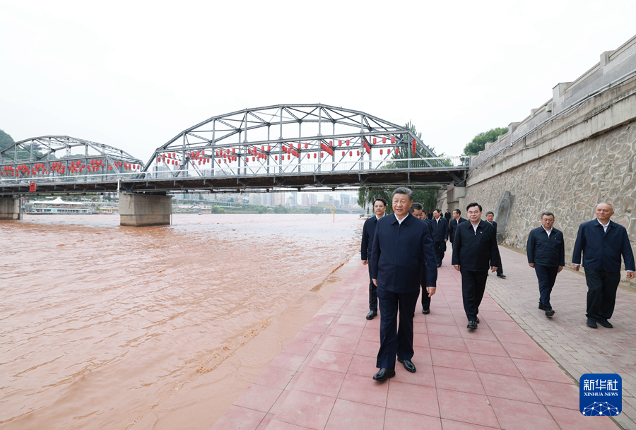 这是11日下午,习近平在黄河兰州中山桥段考察。新华社记者 鞠鹏 摄