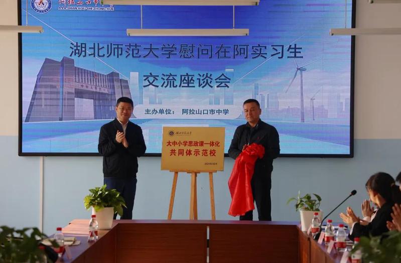 10月8日,天游ty8线路1线路2检测中心大中小学思政课一体化共同体示范校揭牌仪式暨实习生座谈会在新疆阿拉山口市中学举行。学校党委副书记马列军,阿拉山口市委副书记余志毅,阿拉山口市副市长艾克帕尔·木合塔尔,市人社局党组副书记、局长谭俊,市教育局党组书记、副局长、阿拉山口中学书记邵华出席本次会议。