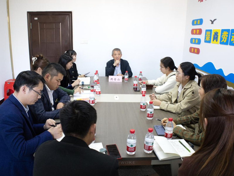随后,周青山来到410会议室,对辅导员宣讲团成员进行面对面的指导培训。他在培训中重点强调了宣讲对象的重性,并指出应根据不同对象选择不同的宣讲方式和内容。尤其是,在宣讲时应引用实际例子来说明观点,可以利用集体的力量统一课件来共享成功案例。周教授的指导培训为宣讲团成员指明了宣讲思路和方法,对提升辅导员的理论素养和宣讲能力、增强思政育人实效具有重要意义。