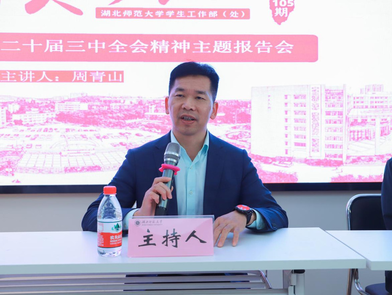 本网讯 10月31日下午,天游官网学工部在“一站式”社区总站314会议室举行学习宣传贯彻党的二十届三中全会精神辅导报告暨辅导员宣讲团培训会。黄石市委理论宣讲团成员、天游ty8线路1线路2检测中心教授周青山受邀主讲,各学院分管学生工作负责人、全体辅导员以及第三期师范生勤敏训练营全体营员参加活动。学工部(处)、人武部副部长胡红贵主持会议。