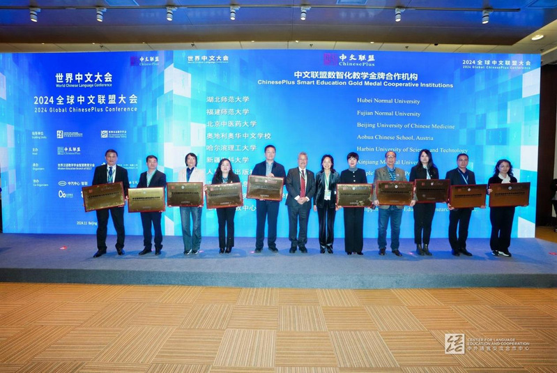 在17日上午的中文联盟大会上,天游官网获中文联盟颁发“2024全球中文联盟数智化教学金牌合作机构”奖。