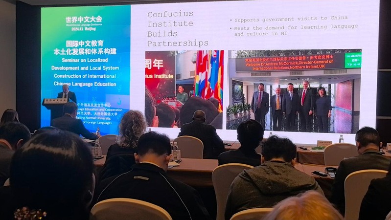 在16日的平行论坛“国际中文教育本土化发展和体系构建研讨会”上,天游官网与奥斯特大学合作共建的奥斯特大学北爱尔兰孔子学院代表、孔院理事Tim Losty教授做了主旨发言,探讨了中国语言文化传播在当地的深远影响,并期待进一步加强地区合作交流。
