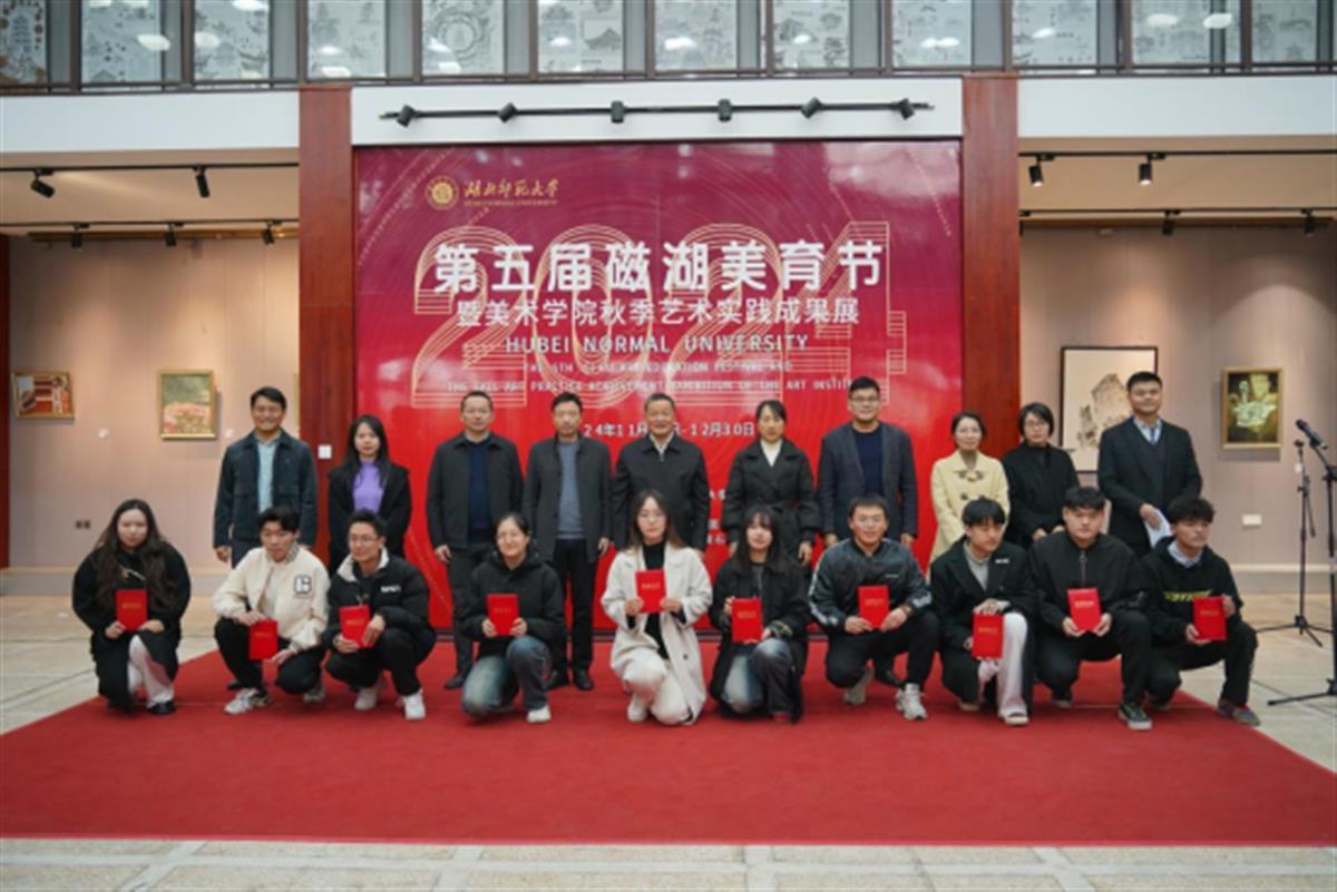卫鹏在主持讲话中指出,本届磁湖美育节以2024年秋季艺术实践优秀成果展为中心,作品立足于祖国壮丽的自然景观和源远流长的中华优秀传统文化,运用艺术视觉盛宴呈现了中华文化的生动内涵与艺术价值。徐明波宣读了第五届磁湖美育节优秀作品获奖名单,并邀请与会领导为获奖学生代表颁奖。