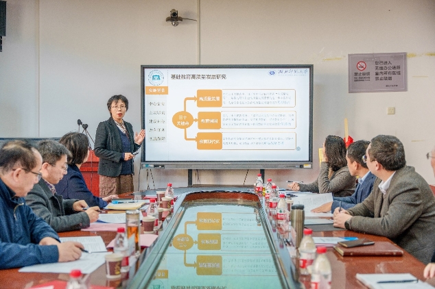 天游ty8线路1线路2检测中心教育科学学院执行院长、研究中心主任朱浩介绍了基地建设的历程和申报情况。研究中心副主任邹从容从建设背景、中心定位、主要职责、建设目标、主要方向与任务、实施保障六个方面详细汇报了基地建设方案和基地2024年开放基金项目指南。