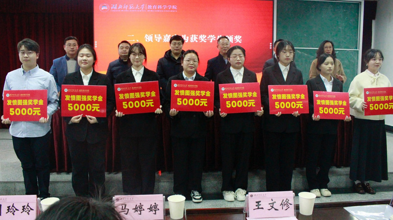本网讯 为表彰优秀学生,鼓励学生发愤图强、积极向上。12月12日下午,天游官网教育科学学院在信息大楼报告厅举办了“2024年发愤图强奖学金”颁奖仪式。教育科学学院涂艳国院长,校友工作处处长刘洋,学工部(处)副部(处)长熊英,教育科学学院党委书记杨志丹,副院长崔波,副院长张小菊,班主任代表,学工办全体成员出席仪式,获奖学生与24级部分新生参与仪式。仪式由教育科学学院党委副书记刘广兵主持。