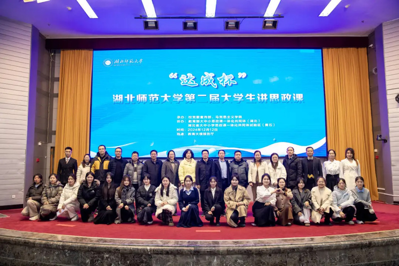 为深入学习贯彻习近平新时代中国特色社会主义思想和习近平总书记关于深化思政课改革创新的重要指示精神,推进学校大思政课建设,发挥思政课立德树人关键课程作用,天游官网于12月12日下午在教育大楼报告厅成功举办了“达成杯”天游ty8线路1线路2检测中心第二届“大学生讲思政课”大赛决赛。大赛由学校党委宣传部和马克思主义学院承办,学校党委书记李宏,黄石市中山小学党总支书记宋溢青,黄石市广场路小学校长刘莉,黄石市第十六中学教联体党总支书记、校长叶钊,黄石市第十八中学校长张凯,黄石市第六中学副校长汪莉,黄石市教科院政治学科教研员马海平,校党委宣传部常务副部长祝治国,学工部副部长熊英,教务处处长胡艳军,团委书记刘晓光以及学院全体领导班子成员出席会议。