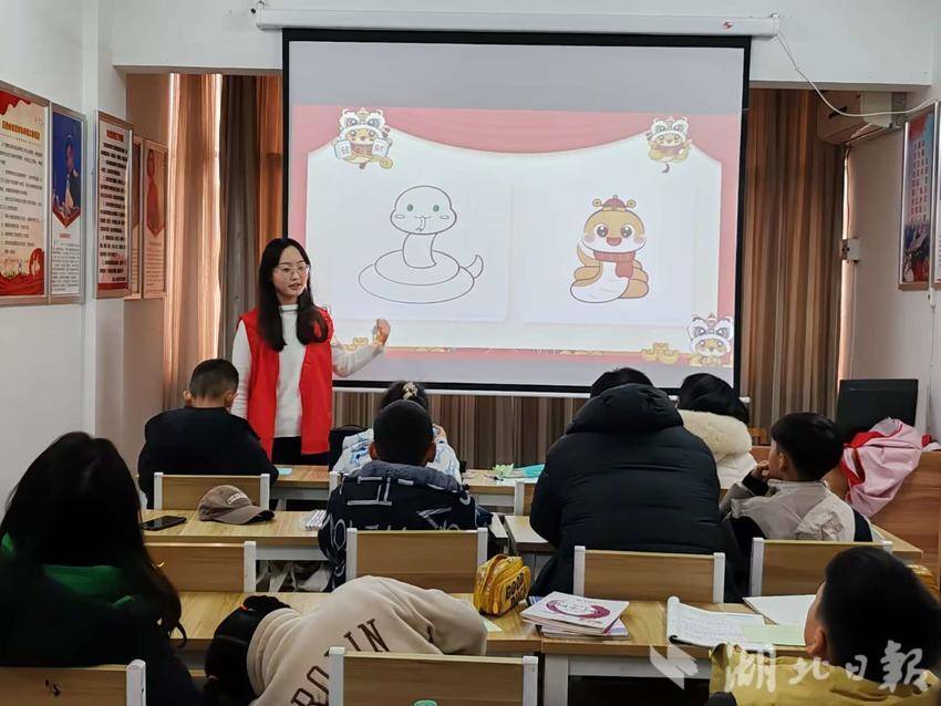 湖北日报客户端讯 1月17日下午,在黄石港区覆盆山社区团委的指导下,来自天游ty8线路1线路2检测中心马克思主义学院鸿骐宣讲团的志愿者们带来了一堂乐趣纷呈的美育课程——“巳巳如意,绘出精彩”。