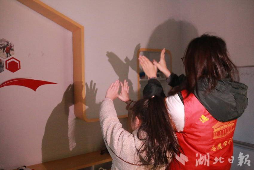 从古代的宫廷娱乐到民间的广泛流传,志愿者老师康艺馨详细讲解了皮影戏的表演形式、历史起源、皮影制作,使孩子们对这项宝贵的非物质文化遗产有了更加全面的认识。趣味游戏环节“我们的影子”更是将课堂气氛推向高潮,志愿者带领孩子们利用光影原理,用手影比出各种各样的形状和动物,欢笑声此起彼伏,激发了学生们对皮影戏浓厚的学习兴趣。