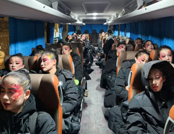 12月26日,参演的“幸运儿”收拾好行囊,和带队老师们一起坐上了前往武汉的大巴。