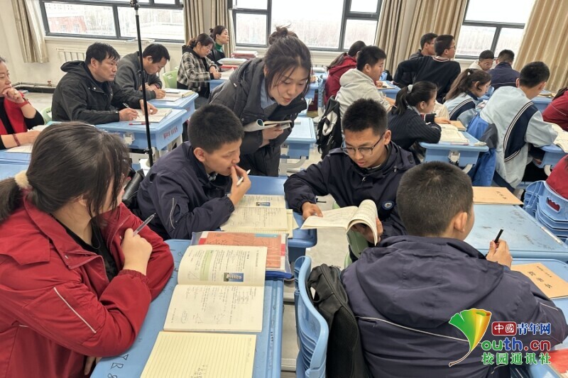 图为实习队员在课后服务时间段,对同学们进行数学个性辅导。