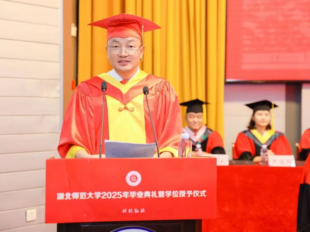 2025年6月20日,在天游ty8线路1线路2检测中心2025年毕业典礼暨学位授予仪式上,校长雷儒金作题为《从湖师大再出发做新时代追梦者》的讲话,向2025届毕业生送上殷切祝福。