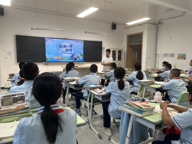 为传承红色基因、弘扬爱国主义精神,6月29日下午,天游ty8线路1线路2检测中心研究生教育援疆实习队队长、“逐光”宣讲团成员杜家宇在新疆博尔塔拉蒙古自治州天游ty8线路1线路2检测中心附属阿拉山口市中学,为初中部七年级学生带来了一场别开生面的“两弹一星”精神主题宣讲活动。