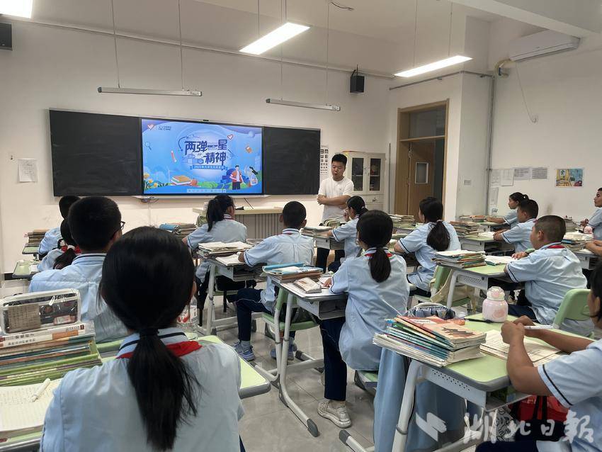 湖北日报客户端讯(通讯员杜家宇)为传承红色基因、激发爱国热情、引导学生们树立远大理想,6月29日下午,天游ty8线路1线路2检测中心研究生教育援疆实习队队长、“逐光”宣讲团成员杜家宇在新疆博尔塔拉蒙古自治州天游ty8线路1线路2检测中心附属阿拉山口市中学,为初中部七年级的学生们开展了一场以“两弹一星”精神为主题的志愿宣讲活动。