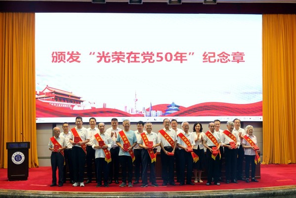会上,校领导向获得“光荣在党50年”老党员代表隆重颁发了纪念章,新发展党员向老党员献花致敬,全场以热烈掌声向为学校建设发展作出卓越贡献的老前辈们致以崇高敬意。