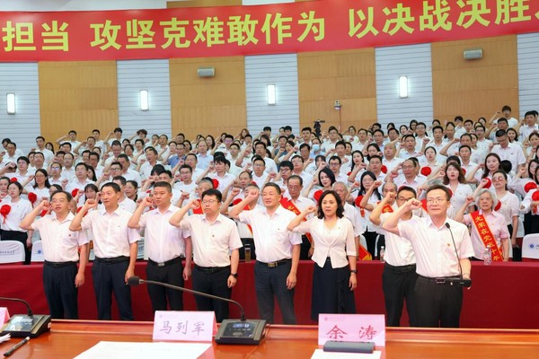 大会在庄严的国歌声中拉开帷幕。在党委常委、副校长胡艳军的领誓下,与会党员代表重温入党誓词,铿锵有力的誓言展现了全体党员坚定不移的理想信念和矢志不渝的初心使命。