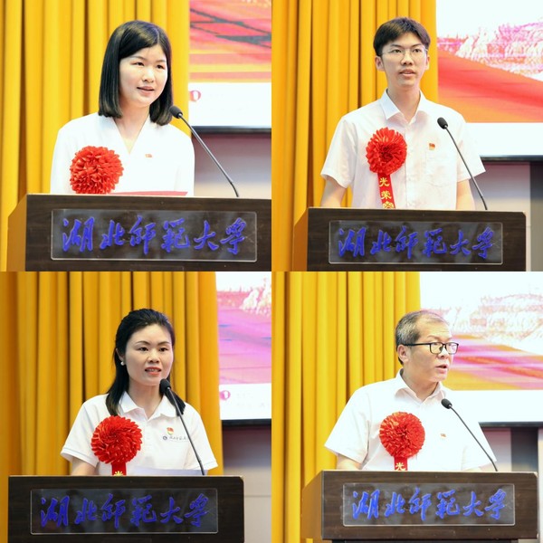 教工党员先锋之星代表、经济管理与法学院赵贤利,学生党员先锋之星代表、马克思主义学院陈强,优秀党务工作者代表、宣传部李优,先进基层党组织代表、化学化工学院罗鸿飞先后作了交流发言。他们分别结合自身工作实际,分享了在教书育人、专业学习、党务工作和基层组织建设中的先进事迹与宝贵经验,展现了湖师党员的良好风貌和责任担当。