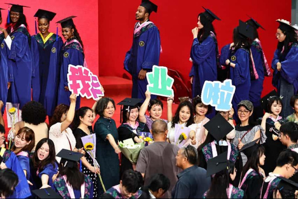在校园操场的看台上,武汉传媒学院播音主持艺术学院毕业生坐在一起。巨型数字气球、鲜花、扬起的学士帽和灿烂的笑,把毕业的喜悦与不舍,都融进这承载青春的场景,是对校园时光的告别,也是奔赴新程的激昂序章。