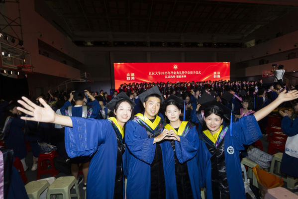 长江工程职业技术学院在文曦门前举行了一场别开生面的毕业送别活动。学校以“上车饺子下车面”的传统习俗为载体,为2025届毕业生送上寓意深刻的“元宝饺子”,以此形式寄托对毕业生们的殷切期望与美好祝福。学校准备了象征“收获梦想、拥抱幸福”的元宝形饺子。全体校领导、党委委员,教师代表为毕业生代表送上饺子,一口口晶莹剔透的饺子不仅承载着母校的心意,更蕴含着对毕业生未来人生路途的深切关怀。