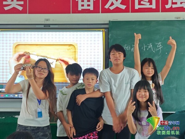 一小组展示太阳能动力小车组装成果 张晗 供图