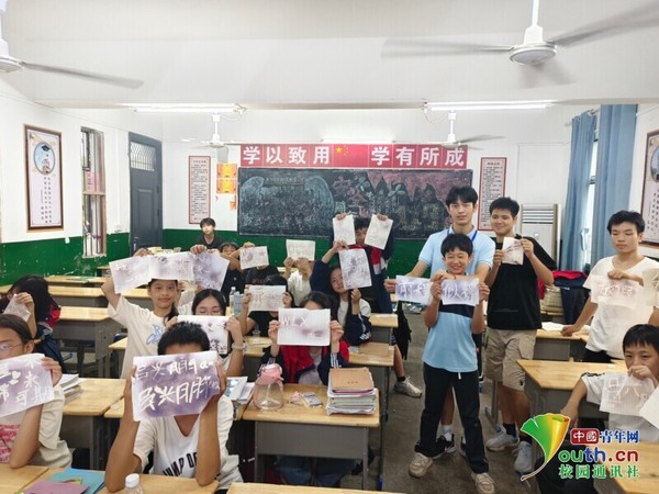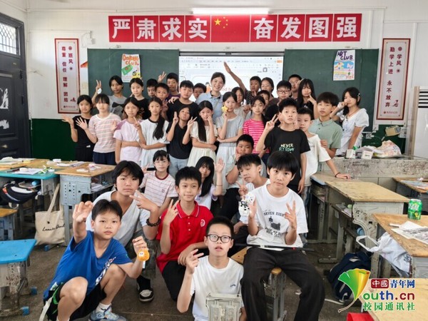 支教最后一课上,学生与老师合影 龙一涵 供图