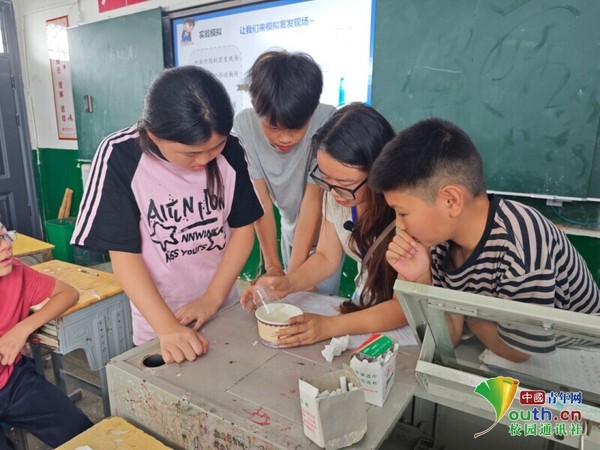 支教老师刘酉曦带领学生做“水往高处流”实验 宗庭竹 供图
