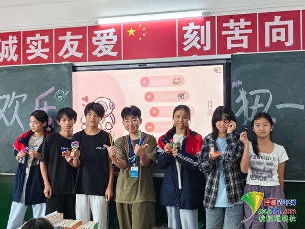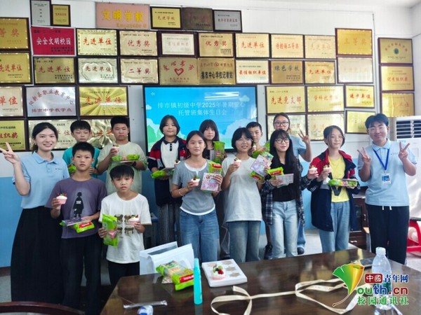 实践队为排市中学爱心托管班学子举办集体生日会 龙一涵 供图
