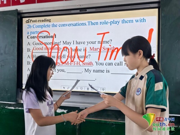 两位同学在听后环节进行角色扮演 詹欣怡 供图