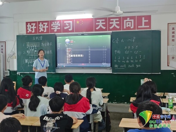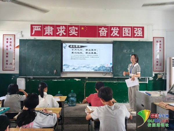 支教老师牟联娟为七年级1班学生上诗歌鉴赏课 詹欣怡 供图