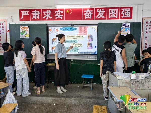 支教老师詹欣怡与同学们一起探究“Gallery Walk”教学法 龙一涵 供图