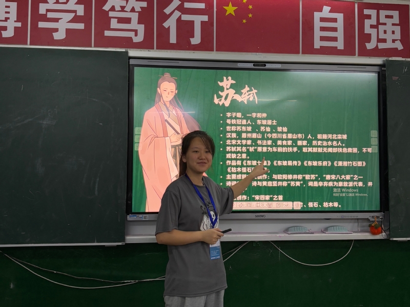 队员庞晨曦为九年级学生讲授苏轼生平。李书涵供图