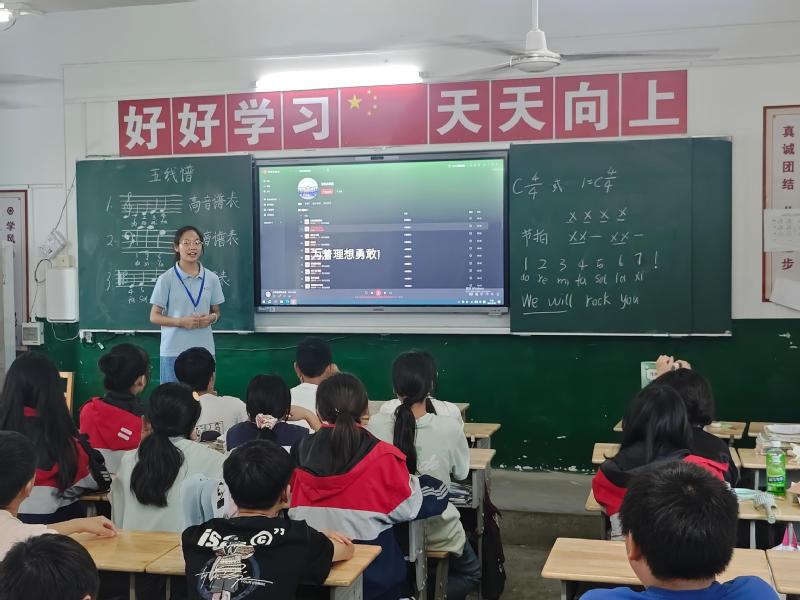 队员龙一涵巧妙地将音乐赏析与情感教育相融合。当《让我们荡起双桨》的旋律响起时,老师引导孩子们闭眼想象“小船儿推开波浪”的画面,分享自己记忆中最快乐的夏日时光。在赏析《We Will Rock You》时,孩子们通过模仿摇滚节奏的力度变化,体验音乐带来的自信与力量。“用力跺脚的时候,我感觉自己像个真正的鼓手!”学生小徐兴奋地说。课程特别设计了“音乐心情卡片”环节。孩子们用不同颜色的彩笔描绘聆听乐曲时的情绪变化:《月光曲》的蓝色卡片上画着安静的星空,《让我们荡起双桨》的绿色卡片则布满欢快的水波纹。课后,这些卡片被制作成“班级情绪树”,记录着每个孩子独特的音乐记忆。
