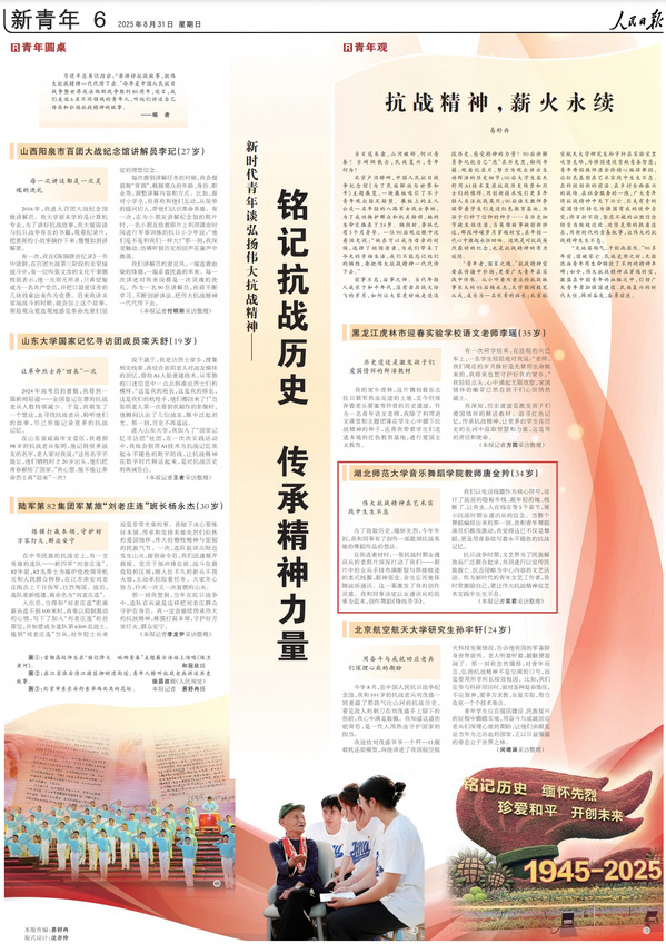 【湖北文明网】天游ty8线路1线路2检测中心教师唐金羚在《人民日报》刊文讲述传承和弘扬抗战精神