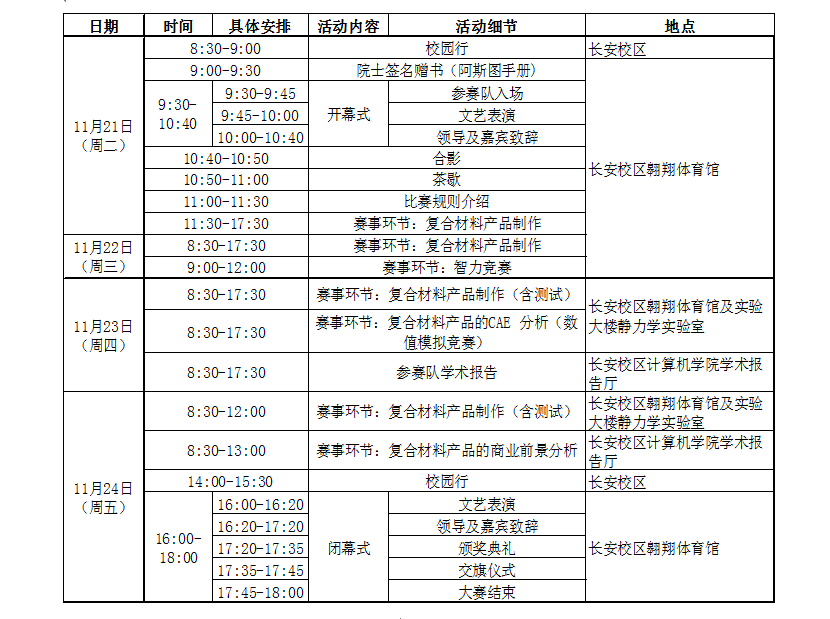 【学术报告】第二届复合材料世界杯赛日程安排