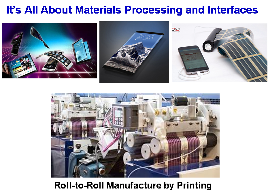 This lecture focuses on the challenging of designing, realizing, understanding, hybridizing, and implementing new, dissimilarmaterials families for unconventional electronics. Fabrication methodologies to achieve these goals will ultimately include high-throughput, large-area, high-resolution printing and coating techniques. Materials design topics discussed include: 1. Rationally designed high-mobility p- and n-type soft matter semiconductors for organic CMOS, 2. Self-assembled high-kdielectrics enabling ultra-large capacitance, low leakage, high break-down fields, minimal trapped interfacial charge, and radiation hardness, 3. Polycrystalline and amorphous oxide semiconductors for printable, transparent, and mechanically flexible electronics,4. Hybrid organic + inorganic semiconductors for high carrier mobility, optical transparency, and mechanical flexibility,5.Combining these materials sets to rapidly fabricate scalable, flexible thin-film transistor-based circuitries and devices.