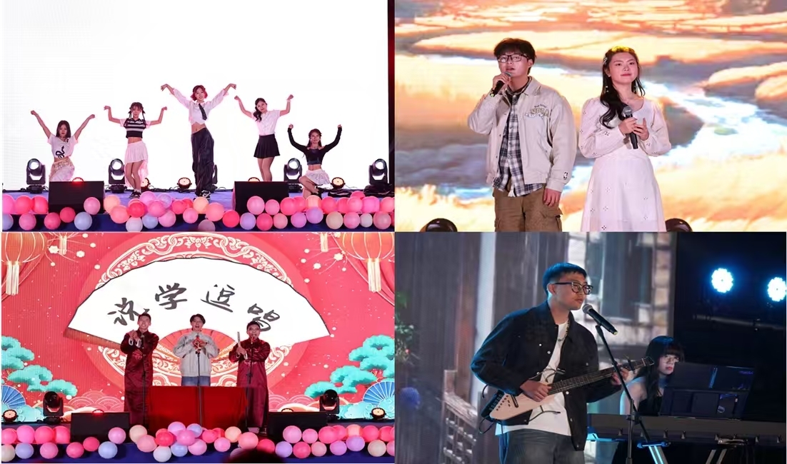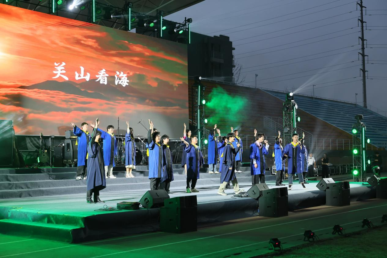 毕业晚会共分《溯光·研途长河》《拾焰·此间炽热》《乘风·山海新章》三个篇章。热舞、摇滚、对唱、民乐合奏......一个个精彩纷呈的节目串起从入学到毕业的青春记忆,同时穿插抽奖与互动,祝福毕业生们挥别校园,信心满满地奔赴下一程山海。