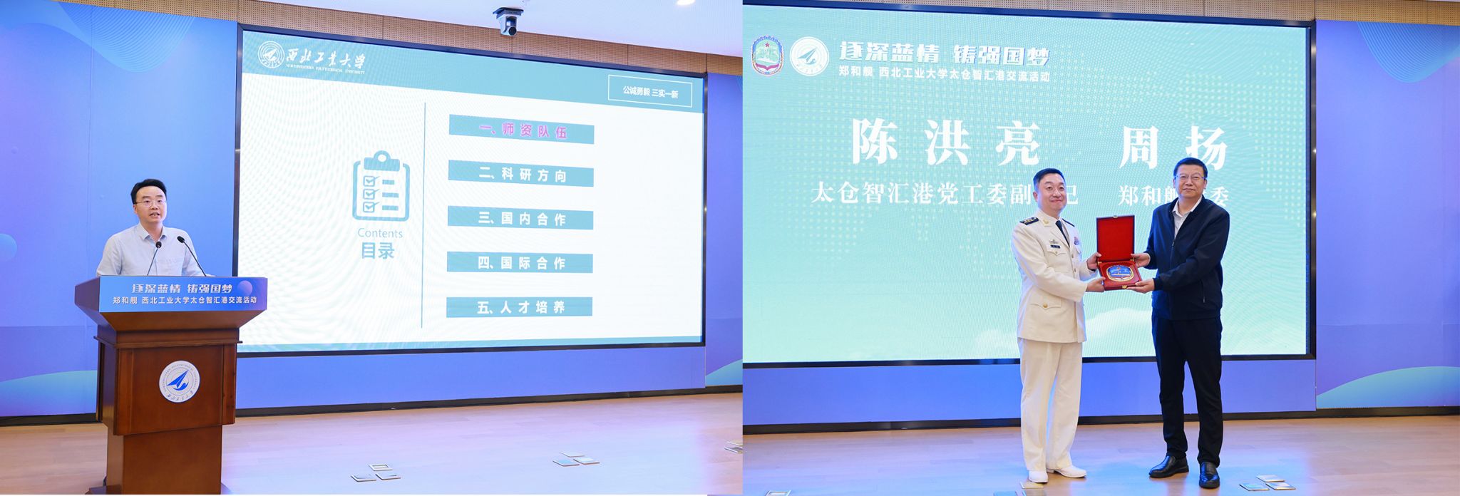 随后,校舰双方互赠了纪念品——“歼-20”模型象征空天利剑护苍穹,郑和舰徽寓意犁波踏浪建功勋,共同寄托着“科技强军、人才强军”的共同愿景。