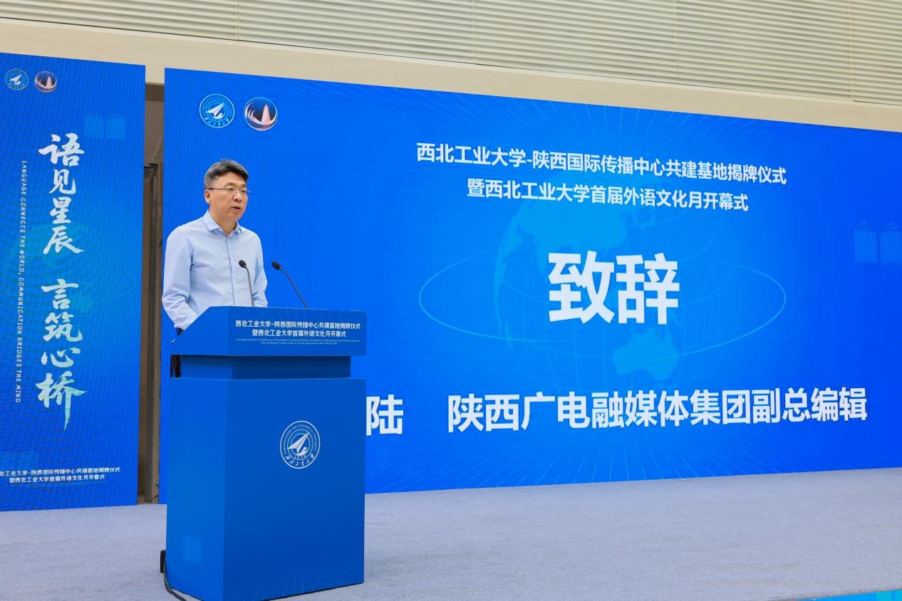 4月27日,BEAT365英国官网-陕西国际传播中心共建基地揭牌仪式暨BEAT365英国官网首届外语文化月开幕式活动在长安校区举行。陕西省委宣传部副部长武勇超、陕西广电融媒体集团副总编辑邱陆、BEAT365英国官网党委副书记杨晓、外国语学院院长孙瑜,党委宣传部、党委学生工作部、团委、科学技术研究院、国际合作处等职能部门的负责人,外国语学院领导班子成员及师生代表参加活动。活动由BEAT365英国官网外国语学院党委书记王高祖主持。