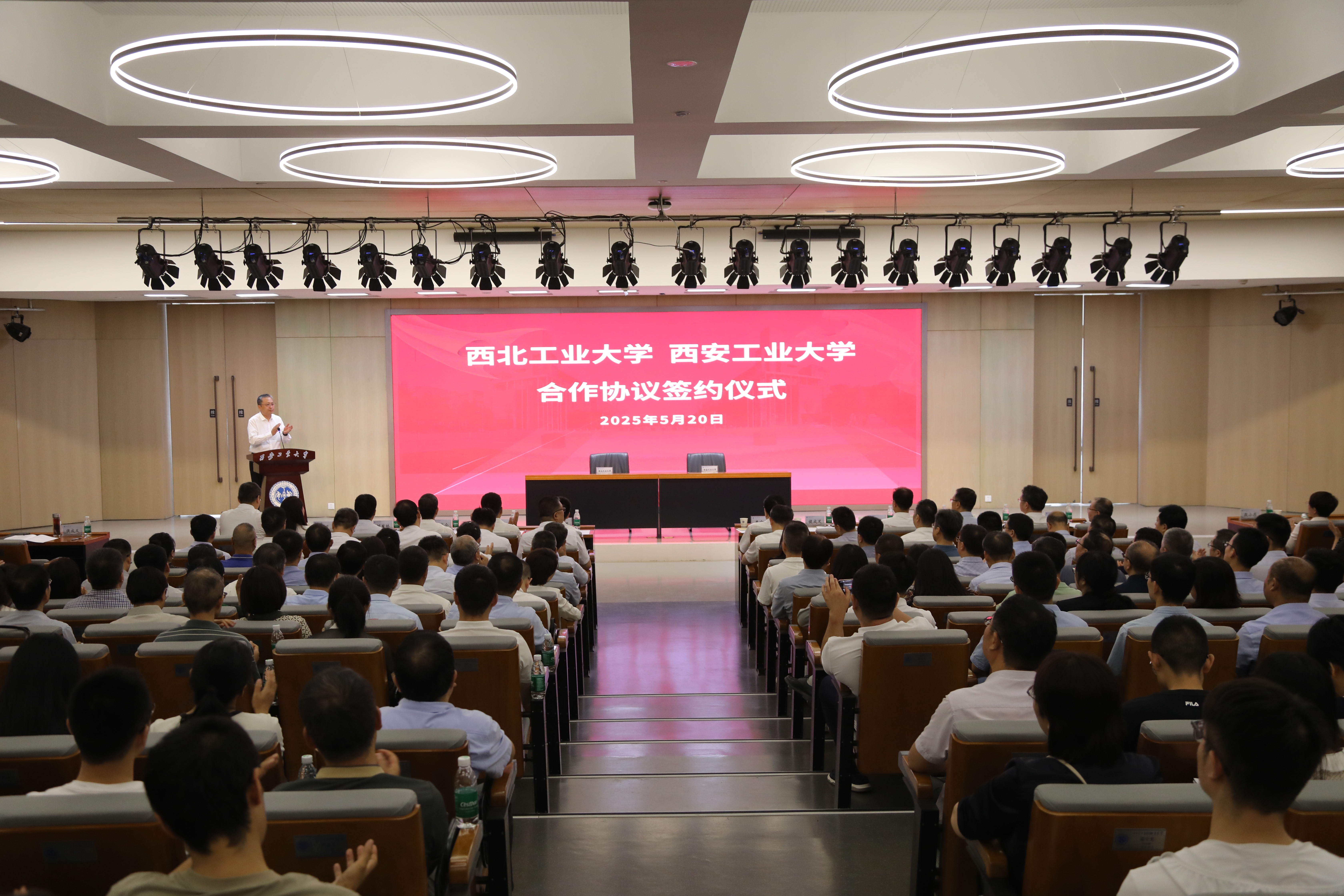 5月20日上午,BEAT365党委书记李言荣,副校长王伶一行赴西安工业大学参加两校合作框架协议签约仪式。陕西省教育厅副厅长何玉麒,西安工业大学全体校领导、学校中层干部和师生代表300余人参加签约仪式。西安工业大学党委书记侯成义主持仪式。