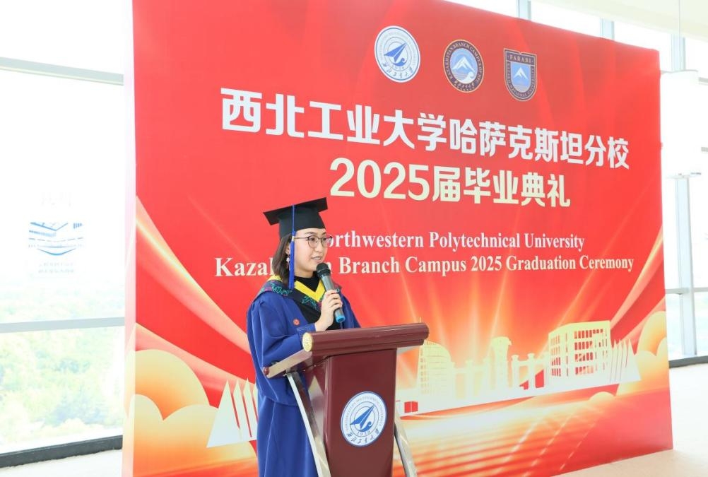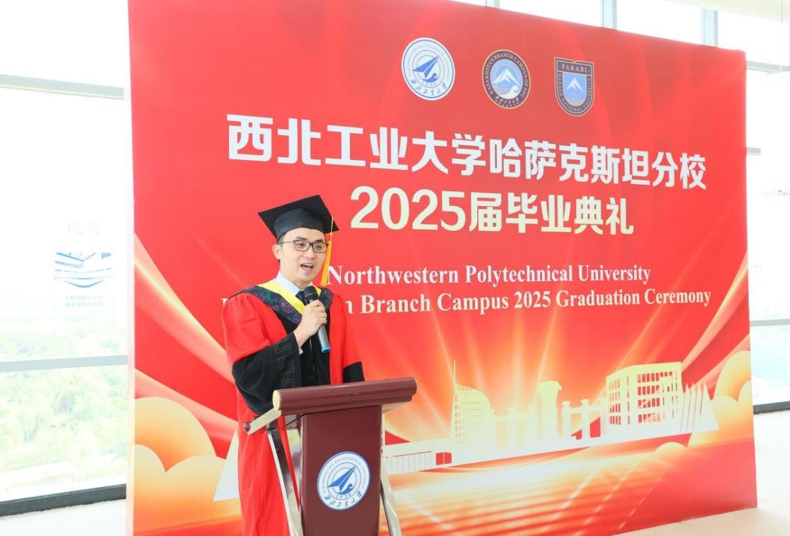 导师代表、材料学院教授刘哲在毕业寄语中表示,同学们在中哈文化浸润下的求学经历,是一笔弥足珍贵的人生财富。他说,这种跨文化的双重视角不仅拓宽了认知维度,更培养了学生们开放包容的思维方式,希望同学们成为促进文明互鉴、推动国际合作的主力,为构建人类命运共同体贡献智慧和力量。
