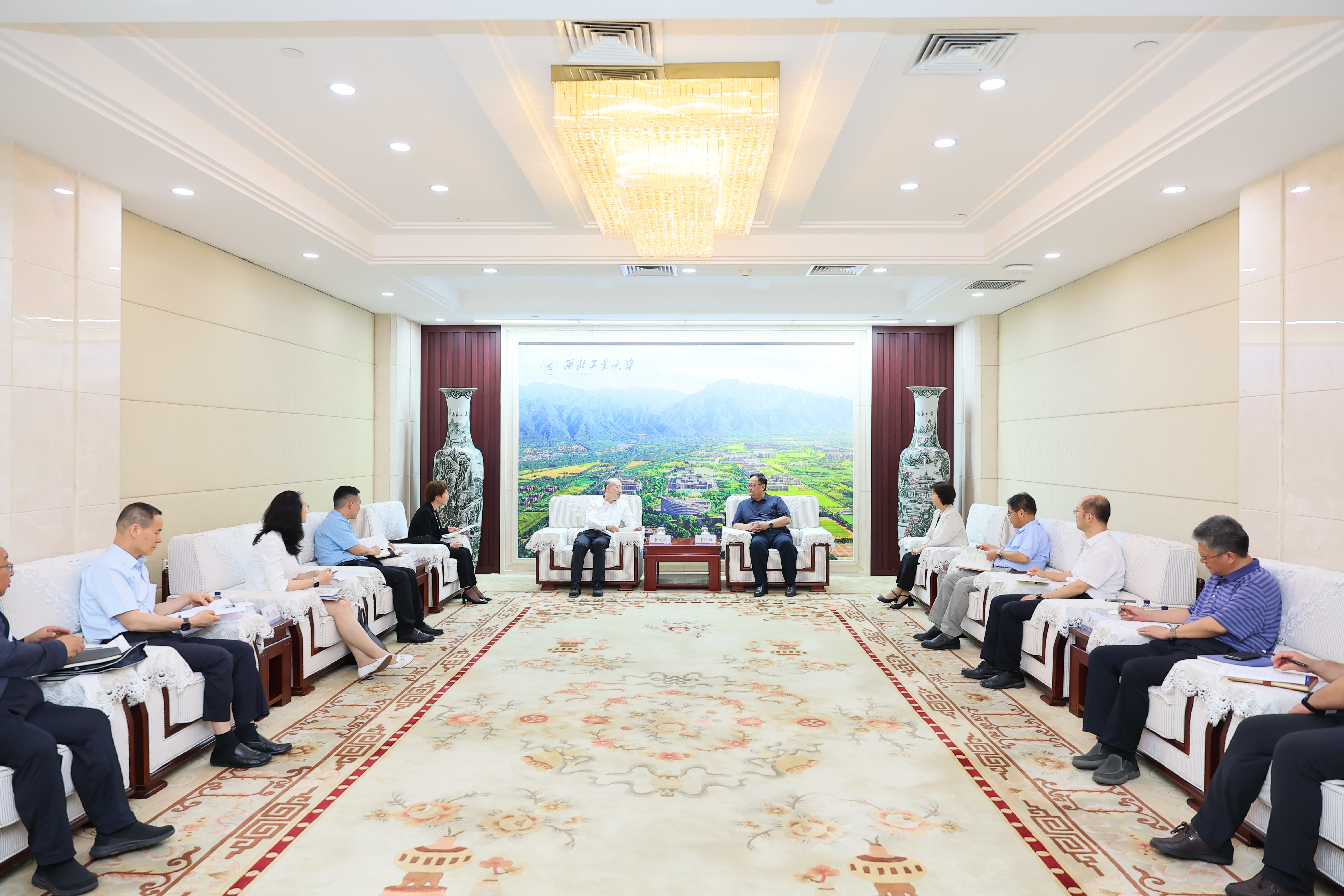 7月7日,中国建设银行陕西省分行(以下简称“建行陕西分行”)党委书记、行长朱斌晨一行来校调研。校长宋保维会见朱斌晨一行,副校长张艳宁参加活动。