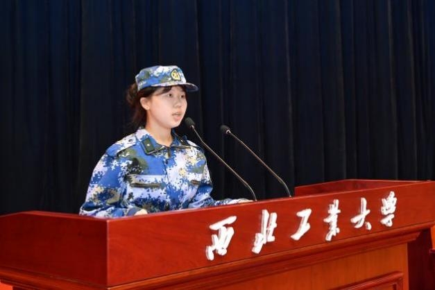 二团十连学员秦晋代表2024级参训学生发言,他表示将以最饱满的热情投入军训时光,以最整齐的步伐、最昂扬的姿态,交出一份属于西工大学子的青春答卷。六团四十八连学员庞安格代表2025级新生庄严承诺,要以军人的标准严格要求自己,以奋斗的姿态迎接挑战,为成为一名真正的西工大人奠定坚实的第一步。
