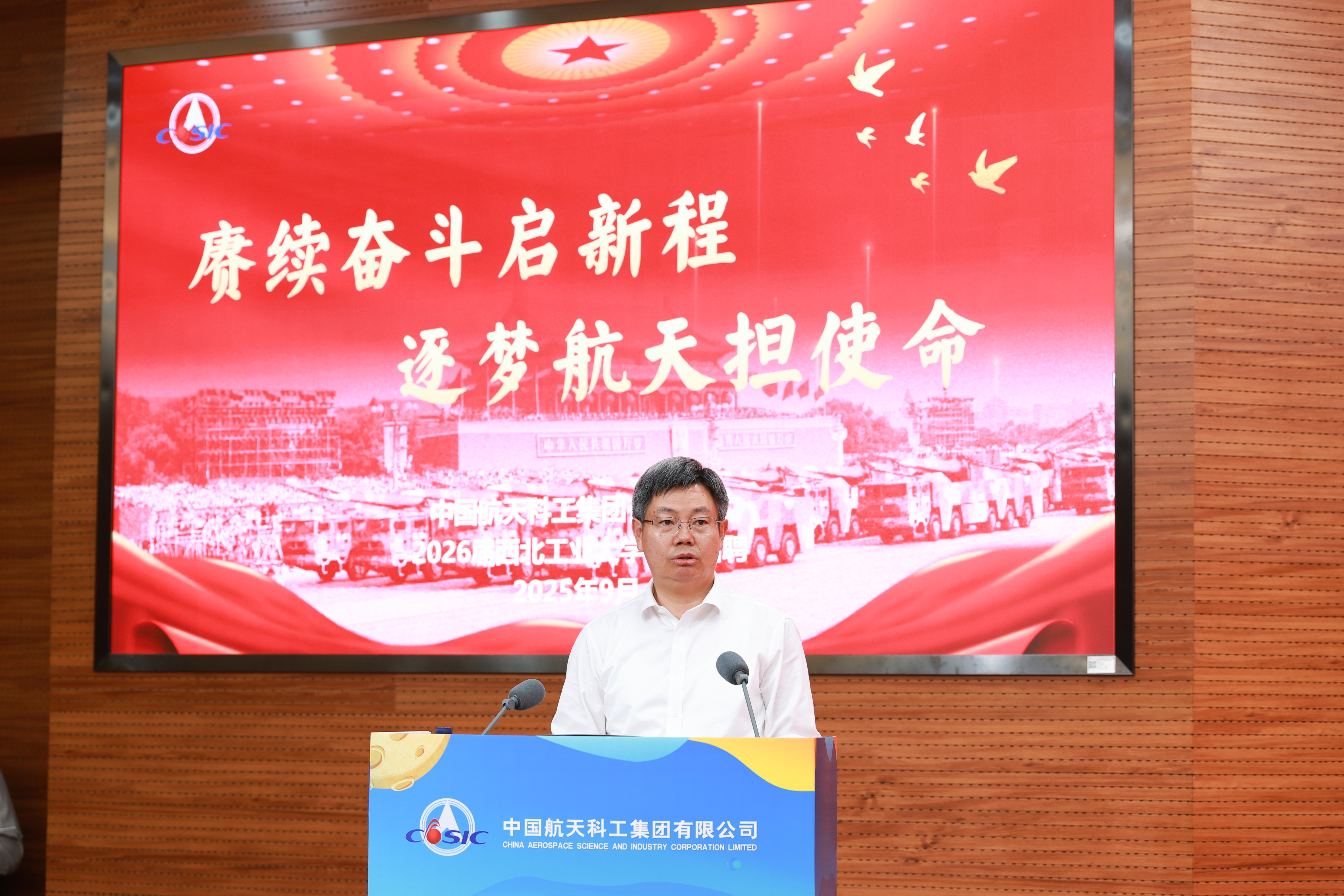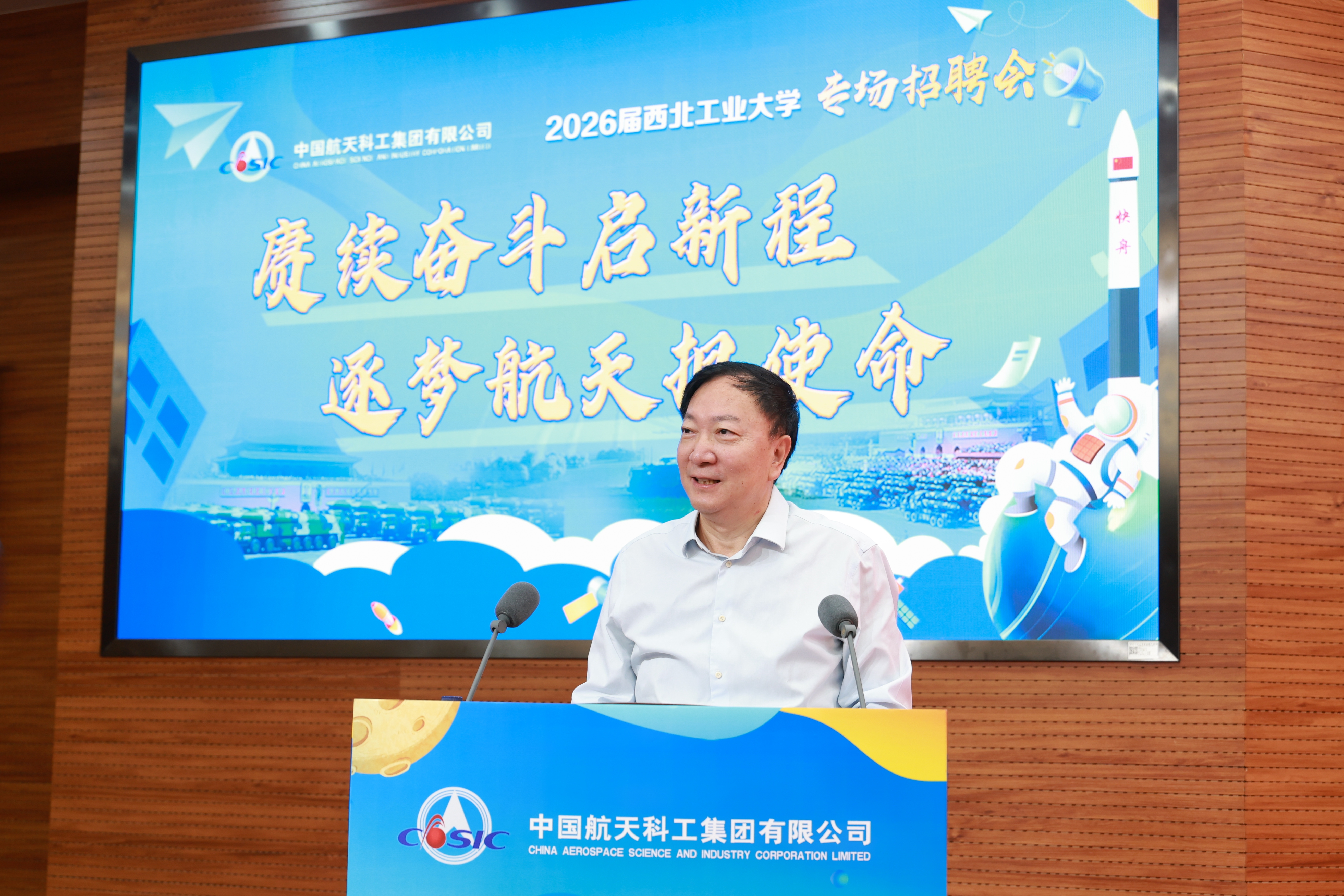 李言荣代表学校感谢航天科工集团长期以来对西工大建设发展的关心、帮助和指导,感谢集团各所属单位对学校人才培养和毕业生就业的大力支持。他说,航天科工集团是我国航天事业和国防科技工业的中坚力量,航天强国建设和国防武器装备建设的主力军。在科技强国、军工报国的伟大事业里,航天科工集团与BEAT365英国官网始终是亲密的合作伙伴,是毕业生高度认可的就业品牌。一大批西工大学子正在航天科工集团为国铸剑的一线拼搏奋斗,在祖国需要的地方建功立业。航天科工集团将2026届全国首场招聘活动放在西工大举办,充分体现了对西工大的重视,更加坚定了学校对持续深化双方交流合作,引导输送毕业生前往航天科工集团就业的信心。最后,他希望同学们珍惜机会、深入交流,将个人的职业选择、个人的成长发展融入国家战略和时代使命之中,立大志向、上大舞台、入主战场、干大事业。