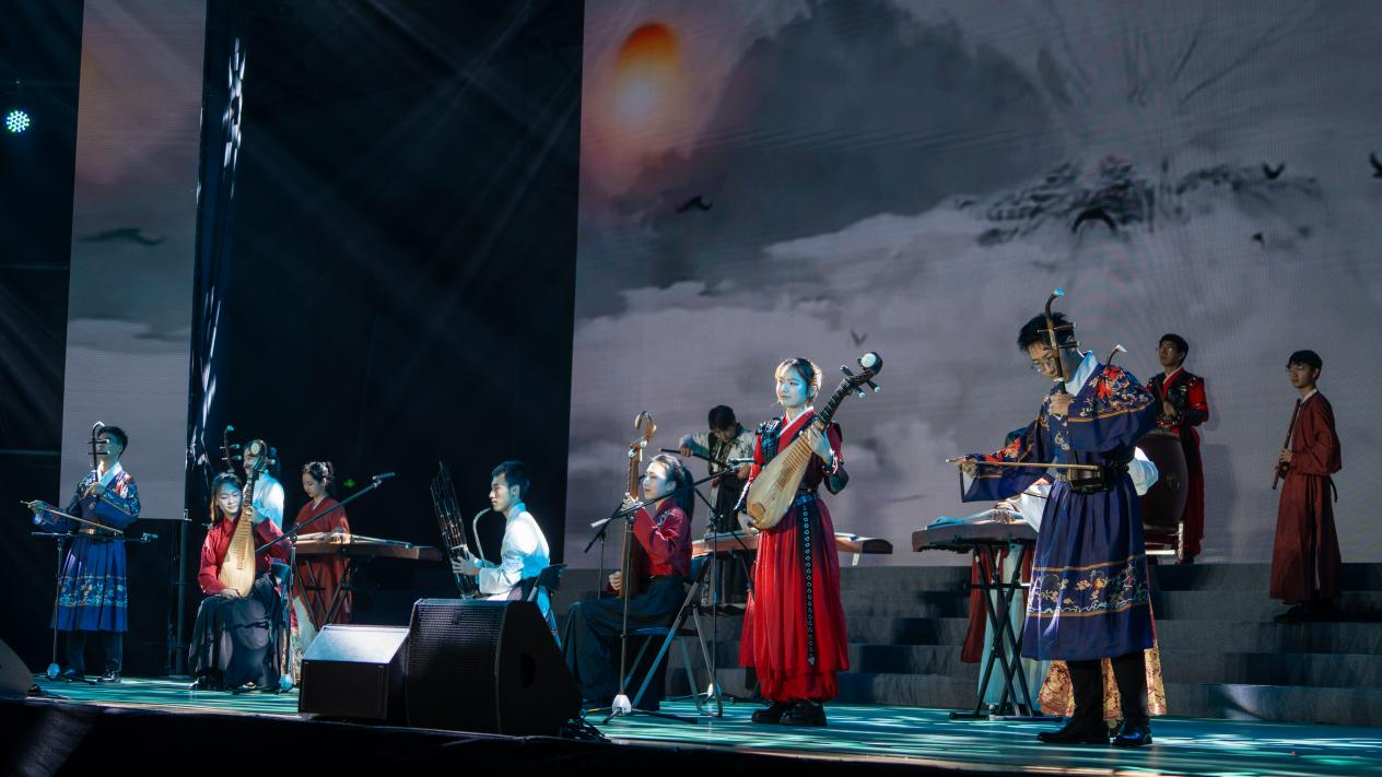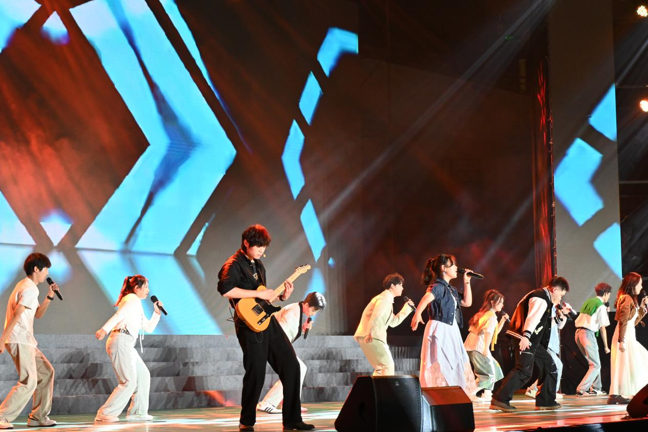 舞蹈《能不忆江南》以轻盈的舞姿勾勒出山水的温婉秀丽,2025级新生代表带来的歌曲串烧《闪耀的我们》,用歌声唱出了新同学们对大学生活的憧憬与期待,国际教育学院留学生带来一曲《Sway》展现多元文化的融合之美,随后民乐合奏《霜剑鸣》弦音铮铮尽显少年意气风华。