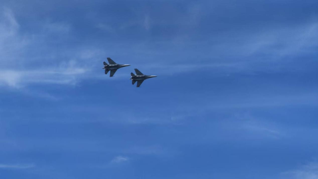 歼-16进行双机机动飞行展示
