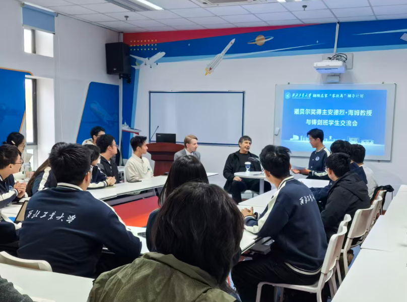 在启真楼的铸剑空间,安德烈·海姆教授做客铸剑班翱翔名家“零距离”辅导计划,与铸剑班40余名学生代表座谈。会议中,安德烈·海姆教授畅谈了团队发现石墨烯的这段经历。2004年,他们通过“胶带游戏”,用普通透明胶带反复粘贴石墨片,成功剥离出了仅有一个原子厚的石墨烯。交流中,安德烈·海姆教授鼓励同学们要“保持孩童般的好奇心”,鼓励大家要关注身边看似微小的新奇现象,要勇于探索新的领域。