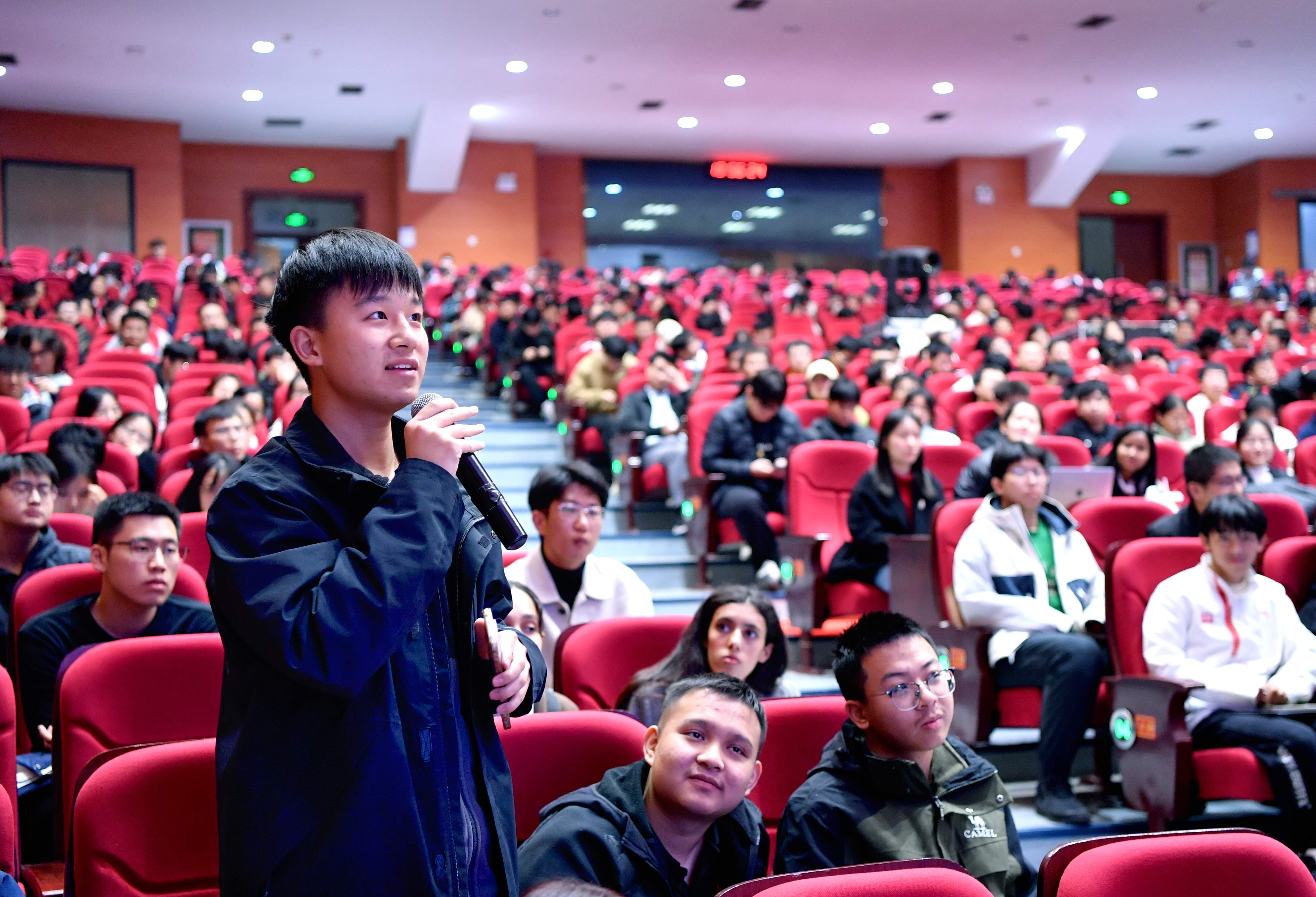 报告会互动环节,同学们踊跃提问,涉及二维材料的奇特性质,利用AI工具预测新材料,更巧妙的实验设计,本科生参与科研的核心能力,以及科研灵感的来源等问题。安德烈·海姆教授一一耐心解答并与大家积极互动。通过与诺奖得主零距离的交流互动,更加激发了同学们对神奇材料和未知领域的强烈好奇与探究热情。