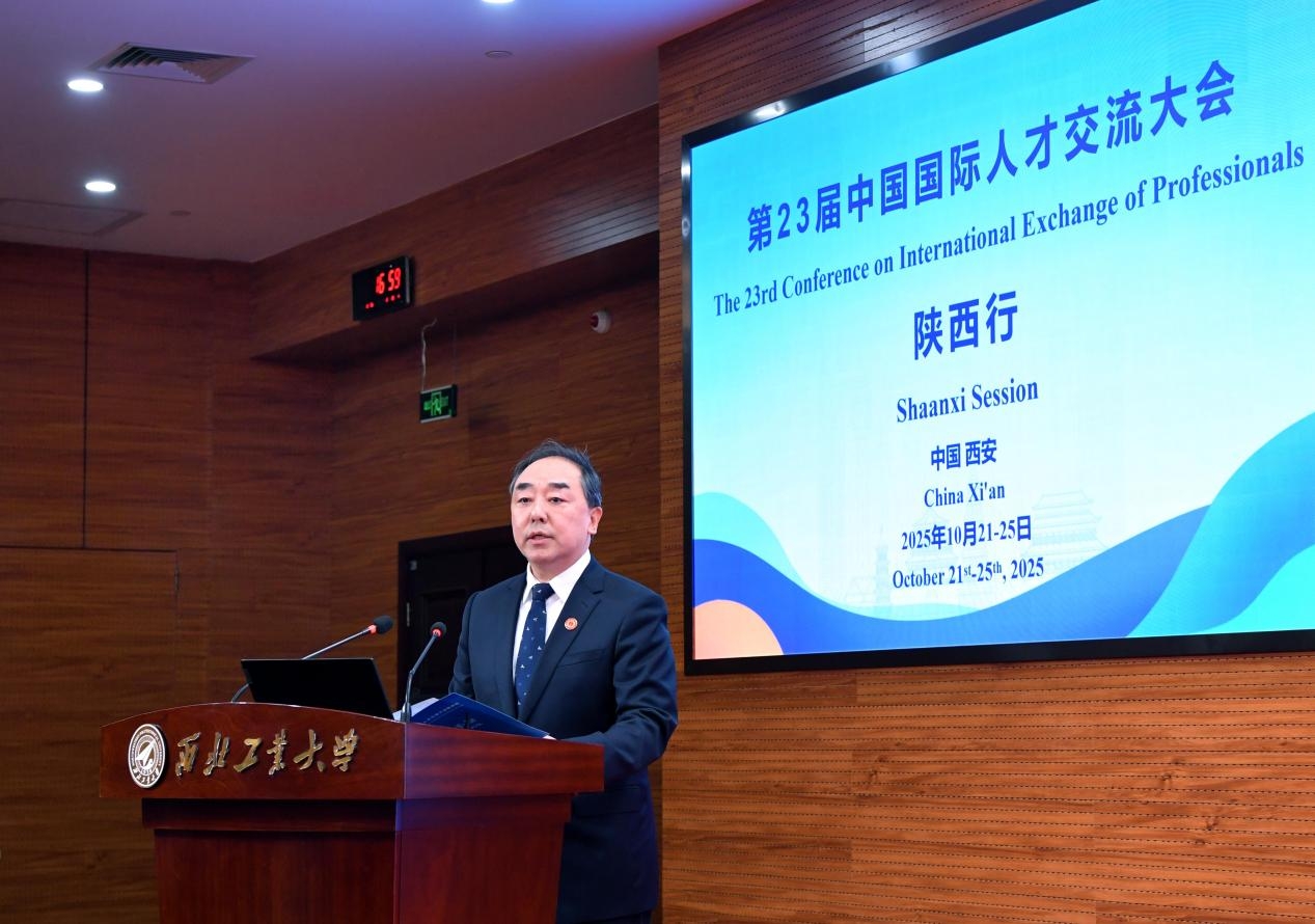白崇军代表陕西省科学技术厅(陕西省外国专家局)致辞。他表示,开放的陕西期待与各国专家共享机遇、共商合作、共促发展,欢迎越来越多的外国专家来陕交流合作、创新创业,与陕西人民携手书写中外互鉴、共促发展的美好篇章。