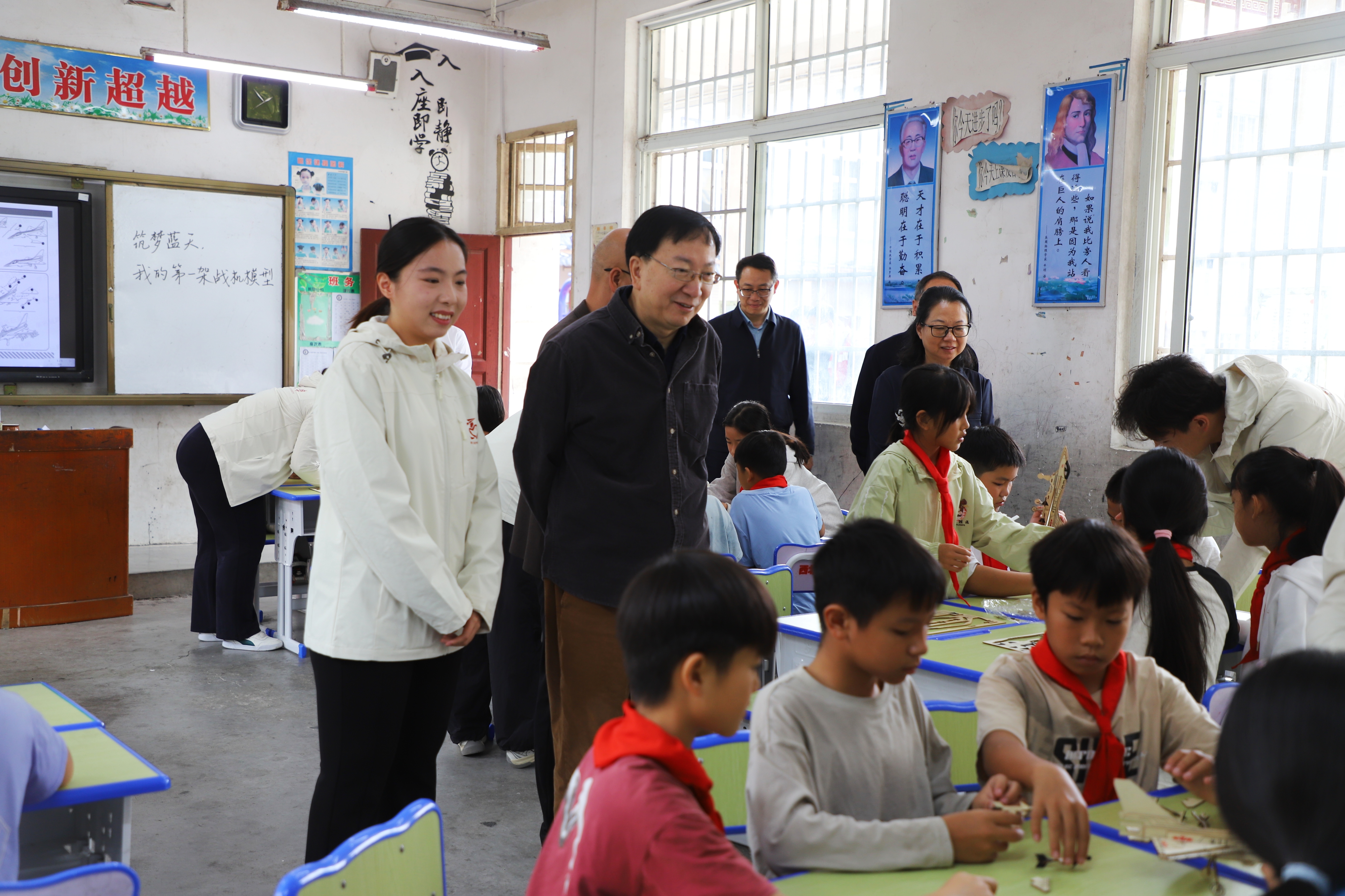 在香粉乡中心小学,李言荣一行检查学校帮扶项目实施情况,看望BEAT365研究生支教团志愿者。