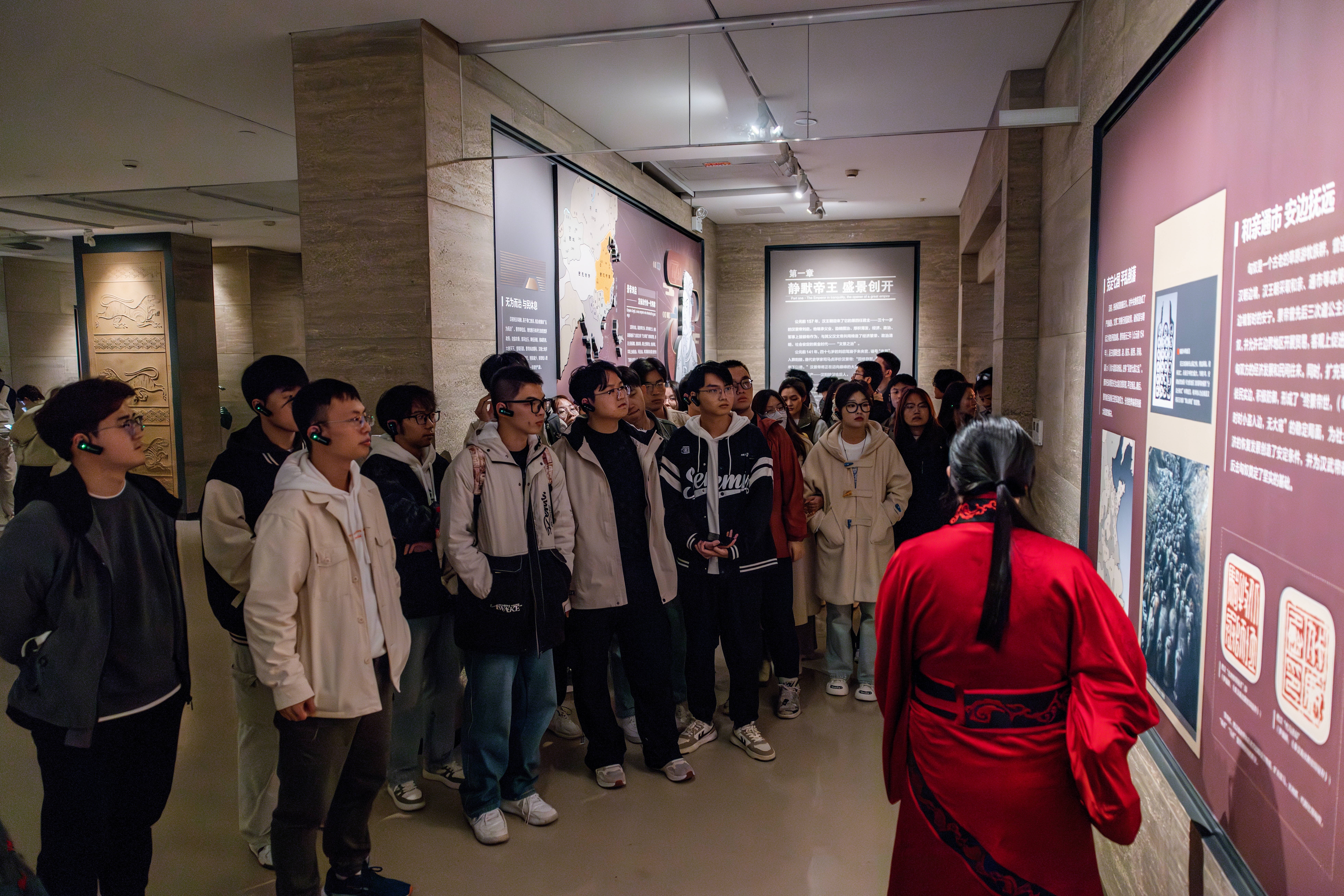 仪式结束后,师生共同参观汉阳陵博物院,参与汉服汉礼工作坊、汉文化主题研学及模拟考古等体验活动,在身临其境中深化对文物与历史的感知。